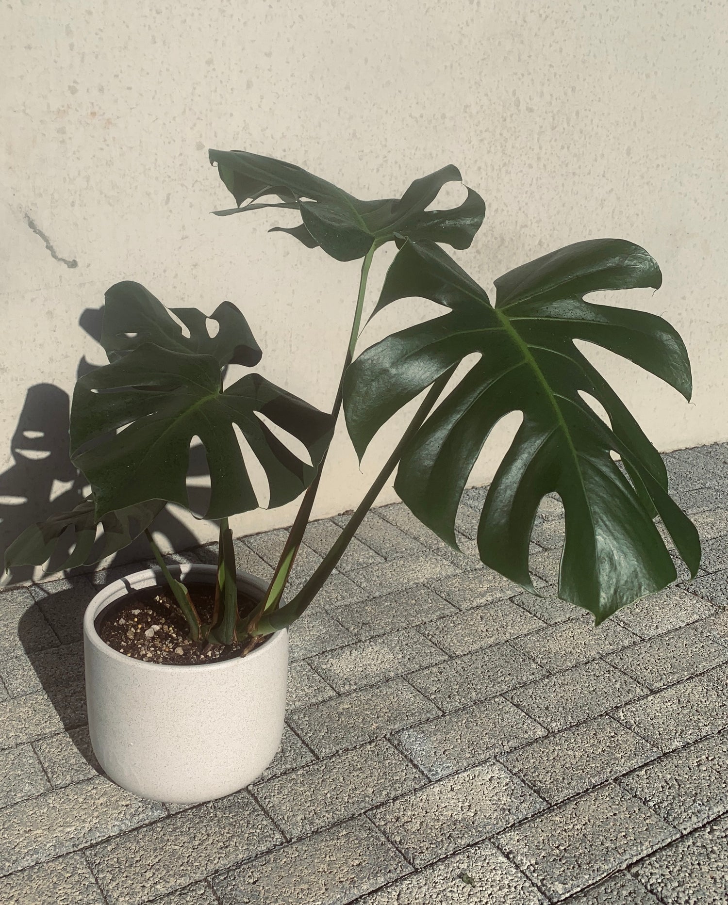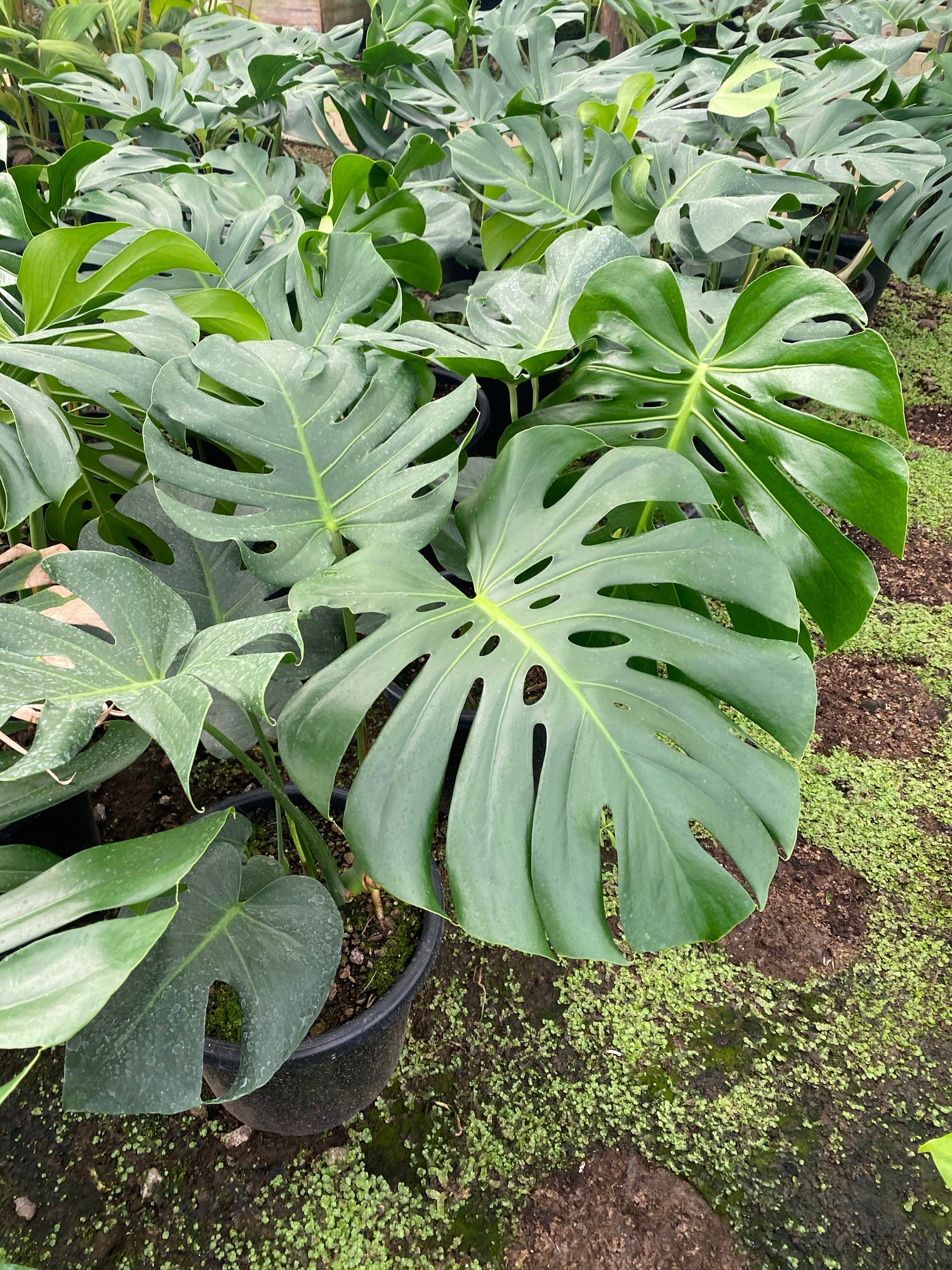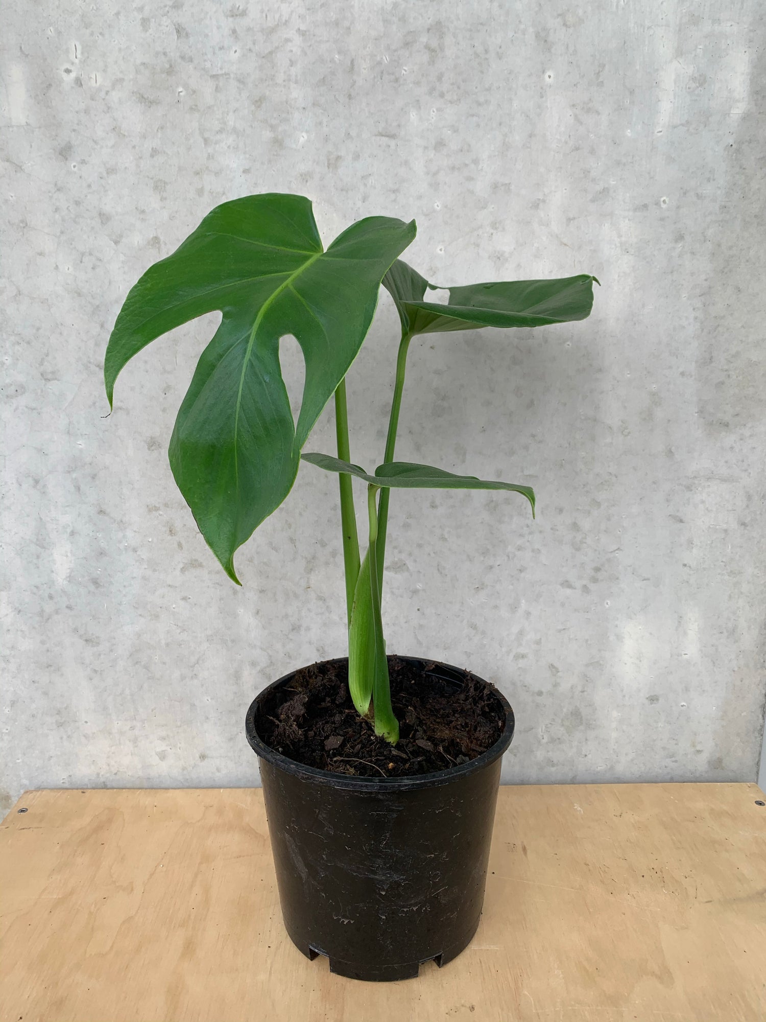 Also called the Swiss Cheese plant, the Monstera is a relatively low-maintenance and fast-growing plant. The plant loves warm temperatures, moderately moist soil and high humidity. Will continue to form new leaves with fenestration as it grows.