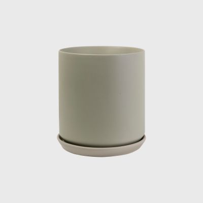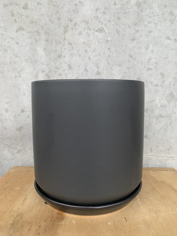 Beautifully simple stoneware planter. Hole in base for drainage and matching saucer.