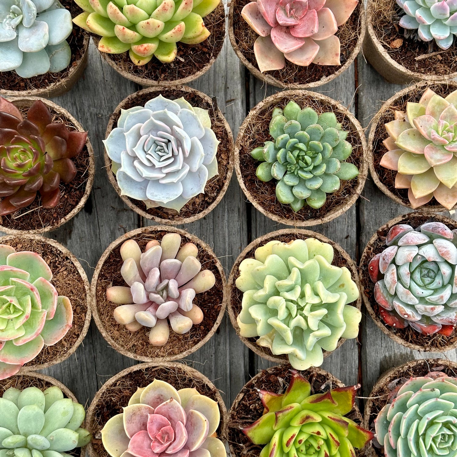 2. (2) mixed succulents inside 7.5cm x 7.5cm Jiffy Mini Pots.