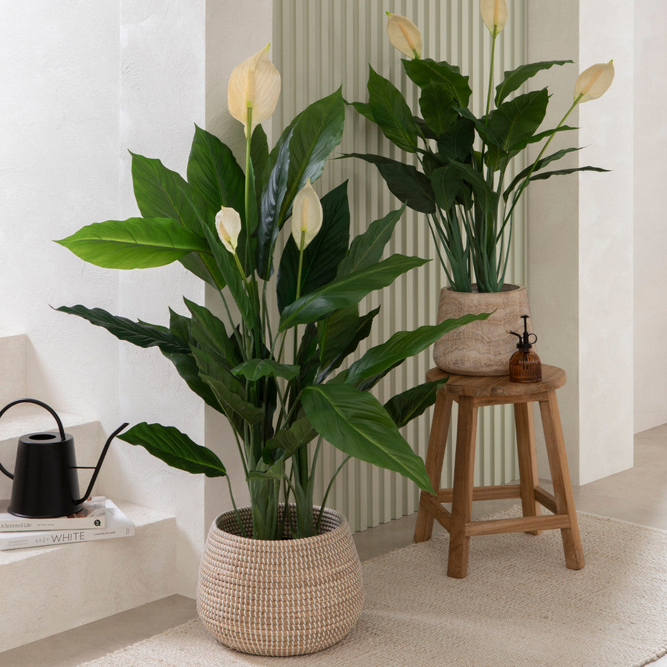 Description: With its elegant white blooms, the Peace Lily excels at removing indoor air pollutants such as ammonia, benzene, formaldehyde, and trichloroethylene. It also helps to increase humidity, making it perfect for dry environments.