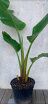 A large banana-like leaf plant with white flowers that resemble a bird in shape. Requires little attention, water when soil becomes dry. Water more frequently in summer for faster growth.